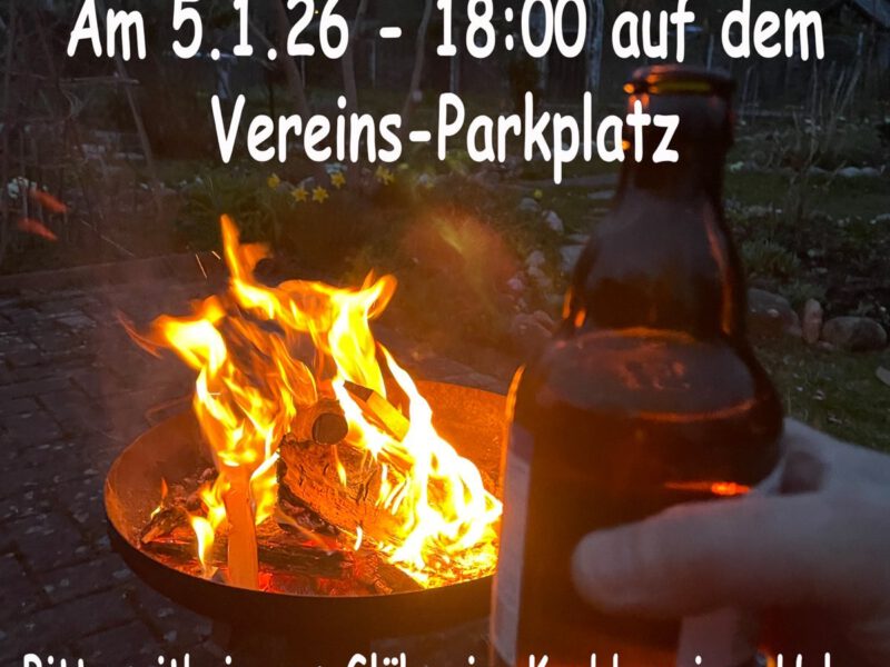 Treffen auf dem Parkplatz des Vereinsheims mit Feuerschalen, Stockbrot, Suppe und Glühwein etc. Es gibt leckere Suppe ! Bitte Knabbereien, etwas zum Trinken ( z.B. Glühwein) und zum Sitzen und Feuerholz mitbringen. Tasse, Schale, Löffel wären auch gut;)